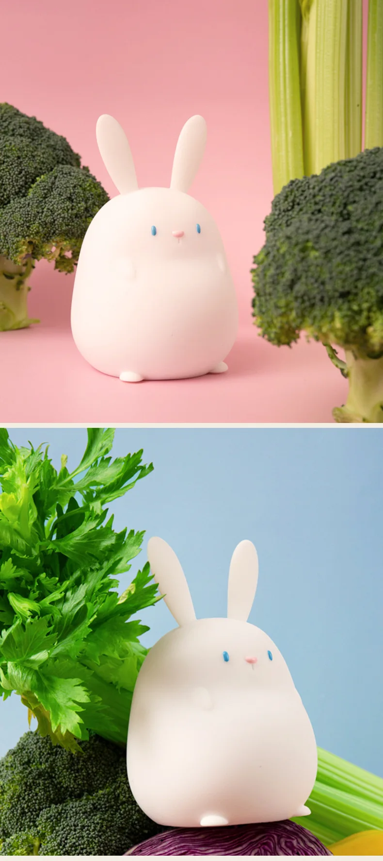 Silicone Rabbit LED Night Light Pat Touch Control Dimmable USB Rechargeable Lamps For Kid Baby Gift Cute Animal Bunny Night Lamp